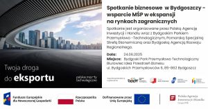 Bydgoski Park Przemysłowo-Technologiczny wraz z Polską Agencją Inwestycji i Handlu, Pomorską Specjalną Strefą Ekonomiczną oraz Bydgoską Agencją Rozwoju Regionalnego serdecznie zapraszają przedsiębiorców sektora MŚP na wyjątkowe spotkanie poświęcone ekspansji zagranicznej i internacjonalizacji biznesu.